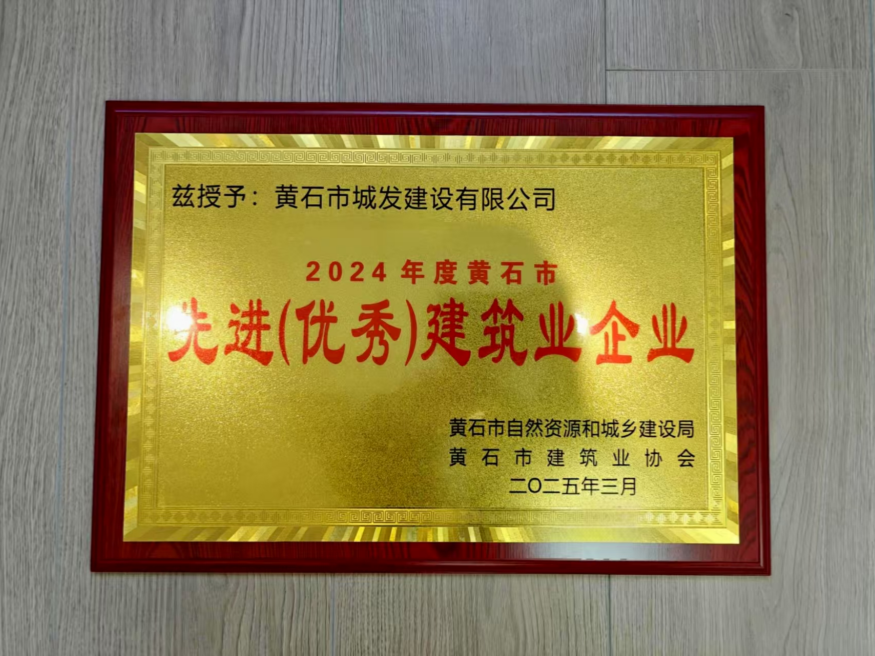 近日,黃石市城發(fā)建設(shè)有限公司被黃石市自然資源和城鄉(xiāng)建設(shè)局和黃石市建筑業(yè)協(xié)會(huì)授予“2024年度黃石市先進(jìn)(優(yōu)秀)建筑業(yè)企業(yè)”榮譽(yù)稱號(hào)。
