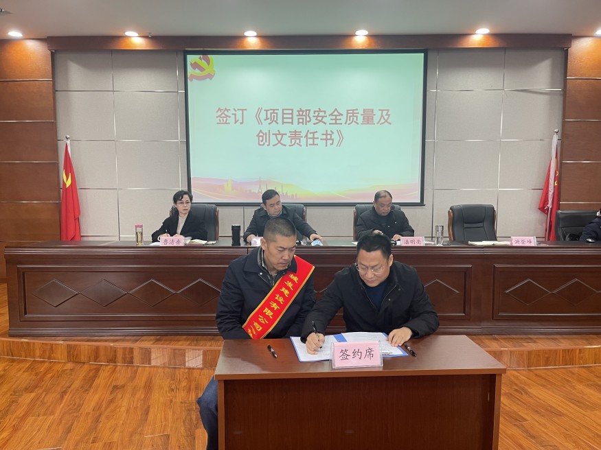 會(huì)上,公司分管領(lǐng)導(dǎo)和各項(xiàng)目部依次簽訂《項(xiàng)目部安全質(zhì)量及創(chuàng)文責(zé)任書》《項(xiàng)目廉潔建設(shè)目標(biāo)責(zé)任書》,全體參會(huì)人員現(xiàn)場(chǎng)簽訂《工程項(xiàng)目建設(shè)廉潔承諾書》。