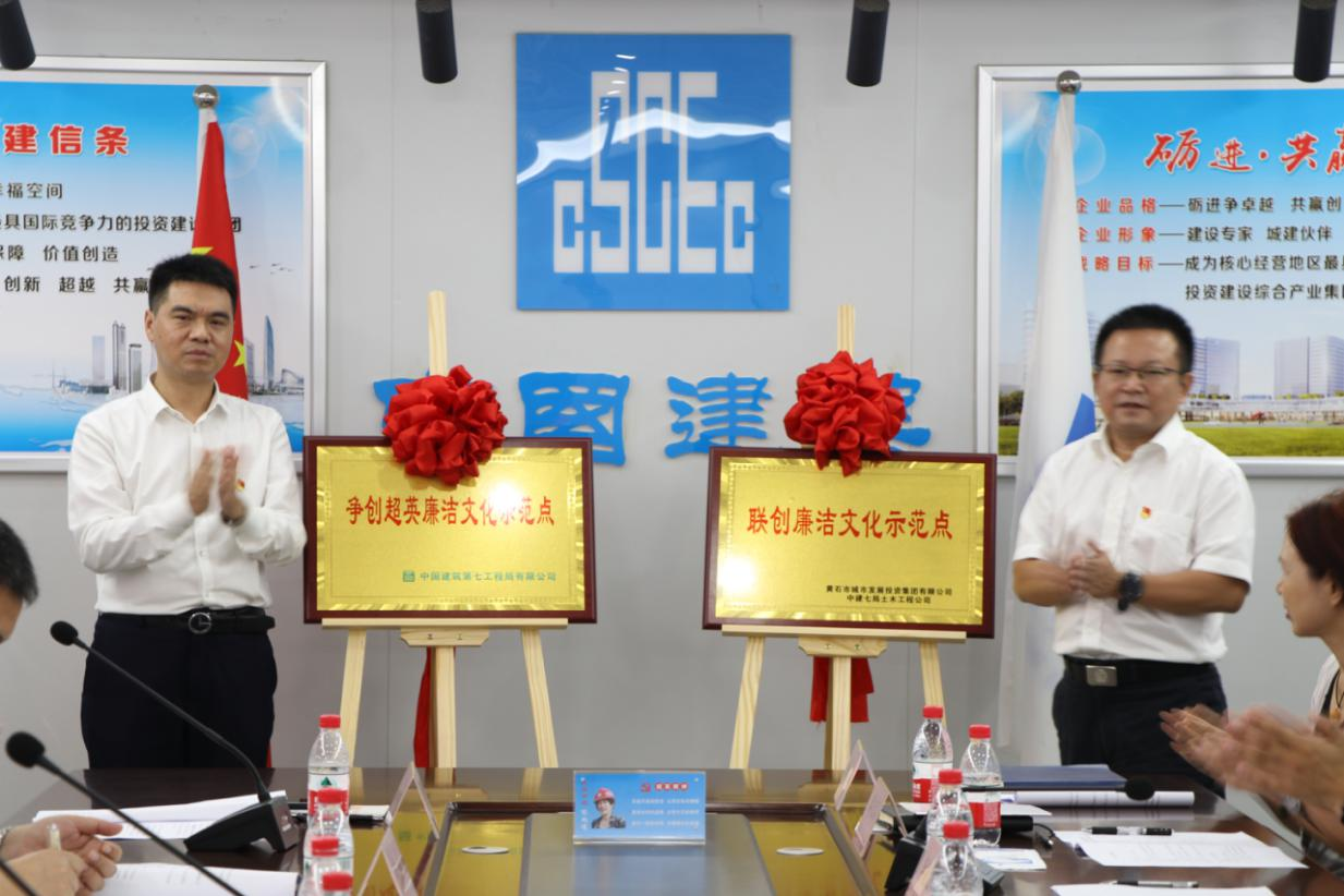 啟動儀式上,觀看了習(xí)近平總書記“七一”講話視頻、《向城而生》宣傳片、陳超英事跡新聞《時代先鋒:陳超英》。宣讀了“超英廉潔文化示范點”聯(lián)創(chuàng)共建實施方案。聯(lián)創(chuàng)共建“三方”紀委書記共同簽訂《“超英廉潔文化示范點”聯(lián)創(chuàng)共建協(xié)議書》。集體宣讀廉潔從業(yè)誓詞、向廉潔監(jiān)督員頒發(fā)聘書,為奮斗在項目一線的黨員、管理人員和青年代表授旗,為項目部“廉潔書屋”贈送廉潔文化書籍。隨后,在熱烈的掌聲中,黃訓(xùn)能、李艷志共同為項目“爭創(chuàng)超英廉潔文化示范點”“聯(lián)創(chuàng)廉潔文化示范點”揭牌。